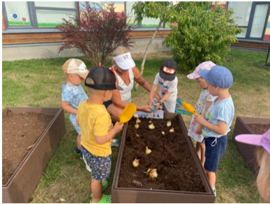 Kukesaba rühma lapsed külavavad esimesed seemned taimekastidesse.